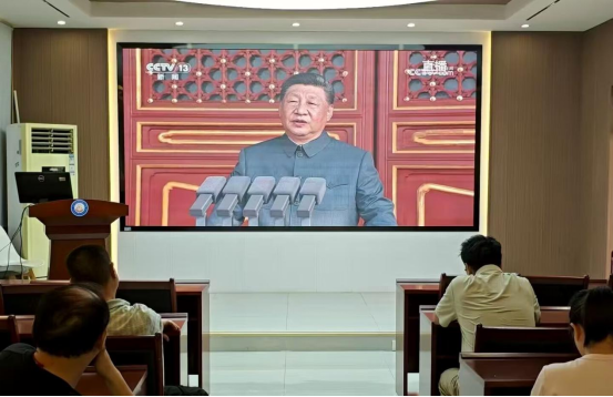 张宝梅老师首先谈到这次阅兵意义非凡,它是以习近平同志为核心的党中央,团结带领全党全军全国各族人民,全面推进中国式现代化进入新征程的首次阅兵,是人民军队奋进建军百年的崭新亮相。 看着整齐划一的方队、先进强大的装备,我们深刻地感受到了我们国家的强大和中华民族伟大复兴。同时也特别强调我们要铭记历史,缅怀先烈,珍惜这来之不易的和平,同时也要以更加饱满的热情和更加坚定的信念,为实现中华民族伟大复兴而努力奋斗。