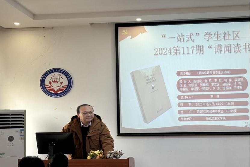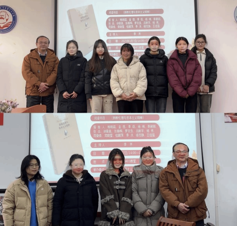 本网讯(通讯员 张悦悦 刘欣)1月7号下午,mk体育官网第117期“博闻读书会”在mk体育官网一站式学生社区中心(求是楼401教室、403教室)顺利召开。本次读书会的主题为资本主义形成的精神支柱,围绕着韦伯的著作《新教伦理和资本主义精神》展开讨论。本次读书会由李齐老师主持。参加此次读书会的14位研究生主讲人为2023级鲍明晨、金想、李晗、杨绵、24级张雨桐、罗文含、吕新宇、杨秀、周雯倩、常晓莹、桂颖萍、李洋、杨雪静、王佳瑶。院学术部“博闻读书会”活动小组组织了此次读书会。