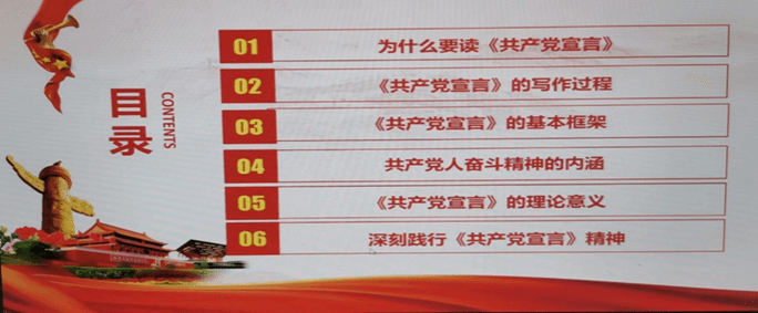 紧接着,李齐老师根据《共产党宣言》着重讲解了“共产党人奋斗精神的内涵”,共产党人的奋斗精神来自于对人类社会发展一般规律的正确认识、来自于无产阶级是解放全人类的秘密、来自于人的全面自由发展的根本要求。而后他又通过举实例说明共产党人奋斗精神的实质就是不断地与资产阶级作斗争,不断创造通向共产主义的条件。最后,李齐老师阐明《共产党宣言》的理论意义,《共产党宣言》标志着马克思主义的诞生,对全世界的无产阶级革命运动起到了巨大的推动作用,并在百年之后作为精神力量推动了近代中国革命和建设。最后,李齐老师鼓励研究生要积极践行共产党人的奋斗精神,从党的百年奋斗历史实践中汲取巨大的智慧和力量,促进自身的全面发展。
