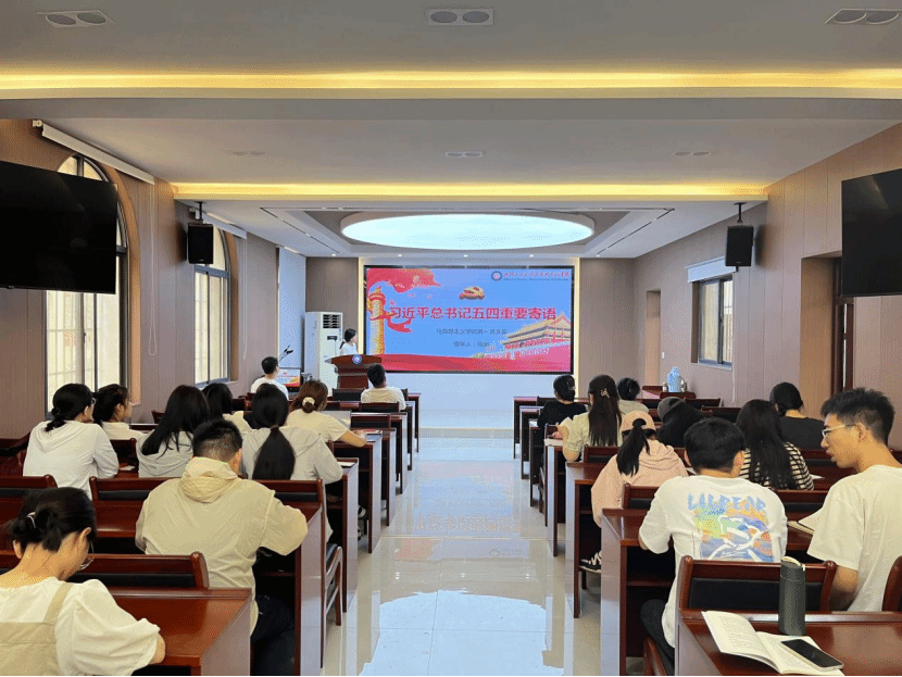 会议第七项,陈丽同学带领学习习近平总书记五四重要寄语精神。她从薪火相传的“青年观”、念兹在兹的“青年情”、厚望重托的“青年志”三个方面领学了习近平总书记五四重要寄语。她认为,在学习习近平总书记五四青年节对全国广大青年寄语精神中,我们能够深刻体会到党对青年的关心爱护。我们应当继续继承和发扬五四精神,以更广阔的视野积极挑战未知,以我们的智慧和勇气为祖国的未来积蓄青春力量。