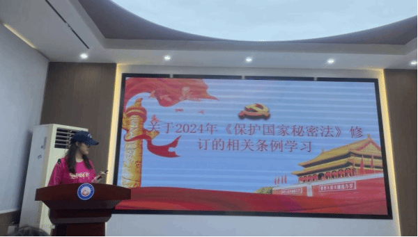 大会第七项,由支部纪检委员王慧同志带领同志们学习《保守国家秘密法》。