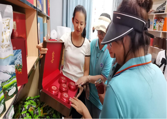 随着活动的深入,“杞韵同心”社会实践队怀揣着对枸杞产业的浓厚兴趣与探索精神,前往了精河县的枸杞小镇进行参观。踏入小镇,队员们立刻被这里现代化的枸杞加工生产线所吸引,只见生产线上的机器有序运转,将一颗颗鲜红的枸杞转化为各种高质量的产品。同时,琳琅满目的枸杞产品也让他们目不暇接,从枸杞干果、枸杞饮料到枸杞保健品,种类繁多,应有尽有。在参观过程中,实践队员们还深刻感受到了浓厚的枸杞文化氛围。小镇上处处可见关于枸杞的宣传画、雕塑和介绍,让队员们仿佛置身于一个枸杞的世界。她们了解到,枸杞在精河县有着悠久的历史和深厚的文化底蕴,是当地人民引以为傲的特产。通过参观,实践队员们不仅见证了精河县枸杞产业从传统向现代转型的辉煌成就,也深刻感受到了科技创新在推动农业产业升级中的巨大作用。她们看到,现代化的加工技术和先进的生产设备大大提高了枸杞的加工效率和产品质量,使得精河县的枸杞产品能够更好地满足市场需求,走向更广阔的市场。此外,实践队员们还与当地的枸杞企业进行了交流,了解了他们在科技创新方面的努力和成果。队员纷纷表示,这次参观让她们对枸杞产业有了更加全面和深入的了解,也让她们更加坚定了科技创新是推动农业产业升级的重要力量的信念。