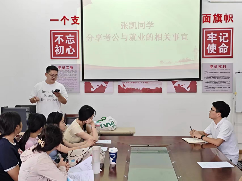 首先,张凯、陈远拓、董一林三位同学进行职业规划、学业规划等方面的经验分享。张凯同学分享了其备考公务员和教育经济与管理专业的就业方向,可以考虑高等院校、央企国企、国考省考、选调、银行、教师等,最重要的是大家要明确自己未来的就业方向,学校期间可以在此基础上丰富自己的履历。
