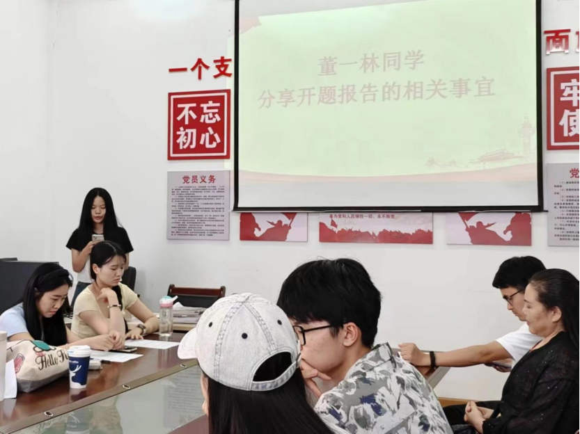 董一林同学分享了其毕业论文开题的经验,撰写开题报告是一个反复打磨的过程,在写的过程中要多和导师还有同学们交流,及时地向老师汇报进度,遇到问题时要主动寻求老师的帮助。