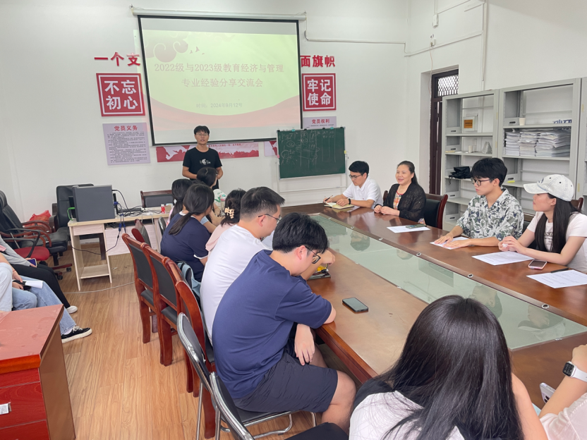 (通讯员:张文志 何娟晖)mk体育官网教育经济与管理专业于2024年9月12日在学院311会议室举办了2022级-2023级联合主题班会。本次会议邀请了22级4班班主任陶夏老师和23级1班班主任杨晴老师,由张文志同学主持,2022级与2023级教育经济与管理专业全体同学参加。