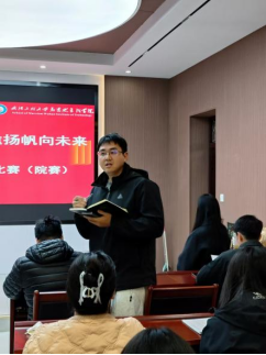 (通讯员:桂颖萍 李思珑)为深入贯彻落实党的二十届三中全会精神,全面贯彻立德树人根本任务,切实提升研究生的综合素质,进一步彰显研究生积极进取、充满活力的精神风貌。12月6日下午,第八届“吴达杯”演讲比赛院内评选赛在mk体育官网求是楼112报告厅隆重举行。mk体育官网党委副书记、副院长(兼)蔡明广,学院团委书记汪喆伦,学院概论教研室余伟斌副教授,以及“红心向党”宣讲团成员鲍明晨出席活动并担任评委。