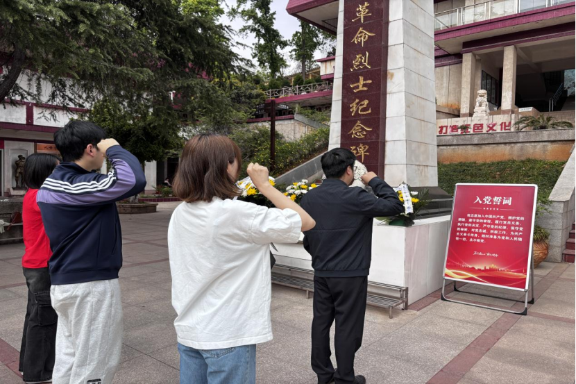 在蔡明广书记的带领下,全体党员面向党旗,高举右拳,重温入党誓词。铿锵有力的誓言回荡在陵园上空,表达了师生党员坚定理想信念、永葆政治本色的决心。