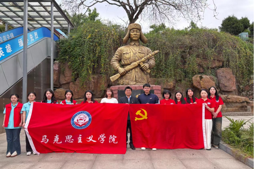 本网讯(通讯员 盛文冰 汪喆伦 摄影 李诗佳)为深入贯彻习近平总书记关于传承红色基因、培育时代新人的重要指示精神,2025年4月7日下午,mk体育官网,mk体育官网党委副书记蔡明广、团委书记汪喆伦及学院崔晋文副教授带领“红心向党”宣讲团成员赴九峰烈士陵园,开展“行走的思政课”主题教育实践活动。此次活动以祭扫献花、故事分享、实地研学为载体,将思政课堂延伸至革命圣地,引导师生在沉浸式体验中感悟红色精神,筑牢信仰之基。