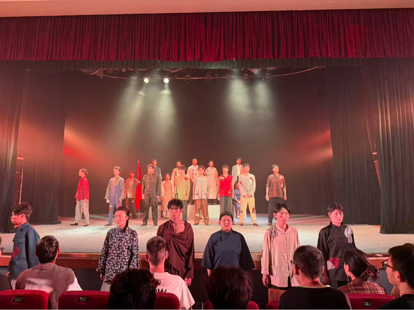 该党课巧妙运用数字灯光、配乐等现代科技手段,成功营造出武汉动荡不安的历史背景氛围,将观众瞬间带入那个风云变幻的时代。演员们全情投入,生动自然的表演、清楚有力的台词以及紧凑的情节设置,将主人公的革命精神展现得淋漓尽致。值得一提的是,演员们积极与观众互动,让观众不再是被动的旁观者,而是真正融入到这场沉浸式体验中,与剧中人物同呼吸、共命运,深刻感受到革命先辈们在艰难困苦中坚守信念、无畏前行的伟大精神与巨大牺牲。演出结束后,王颖教授、崔晋文副教授与演员交流感受,表达了对这场党课的高度认可与内心的激动之情。