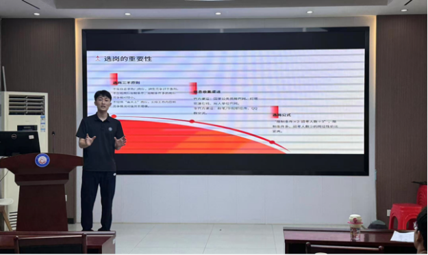 陈斌同学则结合自身求职经历,分享了高校辅导员的备考经验。他从职业目标确定、报考地区选择到具体考试内容逐一展开,并推荐了“公考雷达”等实用工具。陈斌特别提醒同学们要“专注目标,减少对比”,保持良好心态和身体健康,为长期备考打下坚实基础。