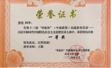 在教学中,秉持着素质教育与能力培养并重的理念,王颖老师重视学生实践能力的培养,积极倡导并践行“以赛促学、以赛促教”的创新教学模式。自2020年以来,在“导航杯”(中南联盟)实践教育活动中,她积极投身其中,悉心指导多名学生参赛并斩获佳绩。2023级马克思主义中国化专业的贺玲同学在她的悉心指导下,成功斩获“习近平新时代中国特色社会主义思想宣讲大赛”校内决赛一等奖。谈及获奖感受时,贺玲同学真诚地说道:“非常感谢老师的耐心指导,老师在备赛过程中帮助我梳理知识点、分析案例,还通过模拟演练纠正我的不足,让我在专业表达和逻辑思辨上有了很大提升,这次成绩的取得离不开老师的支持。”