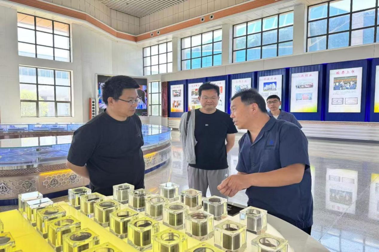 在企业展示大厅,团队认真聆听工作人员对创新产品的逐一详解,当来到集成板及晶片展柜前,据工作人员介绍,超硬材料的应用领域越来越广泛,除盾构机钻头等传统工业制品与珠宝领域之外,在航空航天、国防军工、芯片等新领域的重要作用也愈益凸显。企业面向国家重大需求,聚焦新质生产力,加大技术创新以满足高端领域的需求,推动智能制造技术的应用,以工艺创新提升市场竞争力。