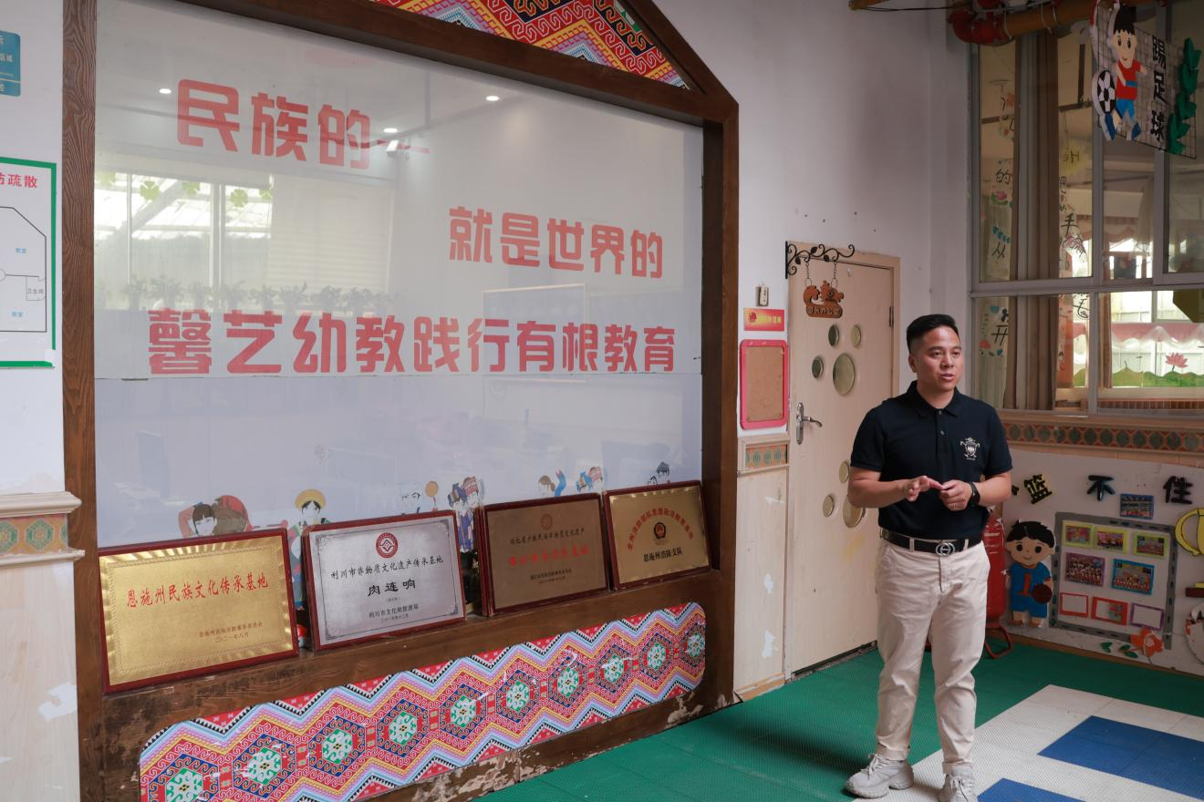 清晨的利川市馨艺幼儿园,园里总是能传出阵阵富有节奏的拍打声,这是幼儿园的学生跟着老师一起抖动肩膀,拍打四肢——正是该园特色课程肉连响的日常练习场景。刘守红创办馨艺幼儿园,以传承传统文化为办学宗旨,创新性地把肉连响、利川灯歌等民族文化和中国传统习俗、节俗和传统舞蹈融进幼教工作中,让幼儿认识传统节日,培养爱国热情,增强民族自信,厚植文化认同感。刘守红说:“要让年轻人从小就树立理想信念,增强民族自信,文化自信”,让传统文化在下一代心中播下希望的种子。