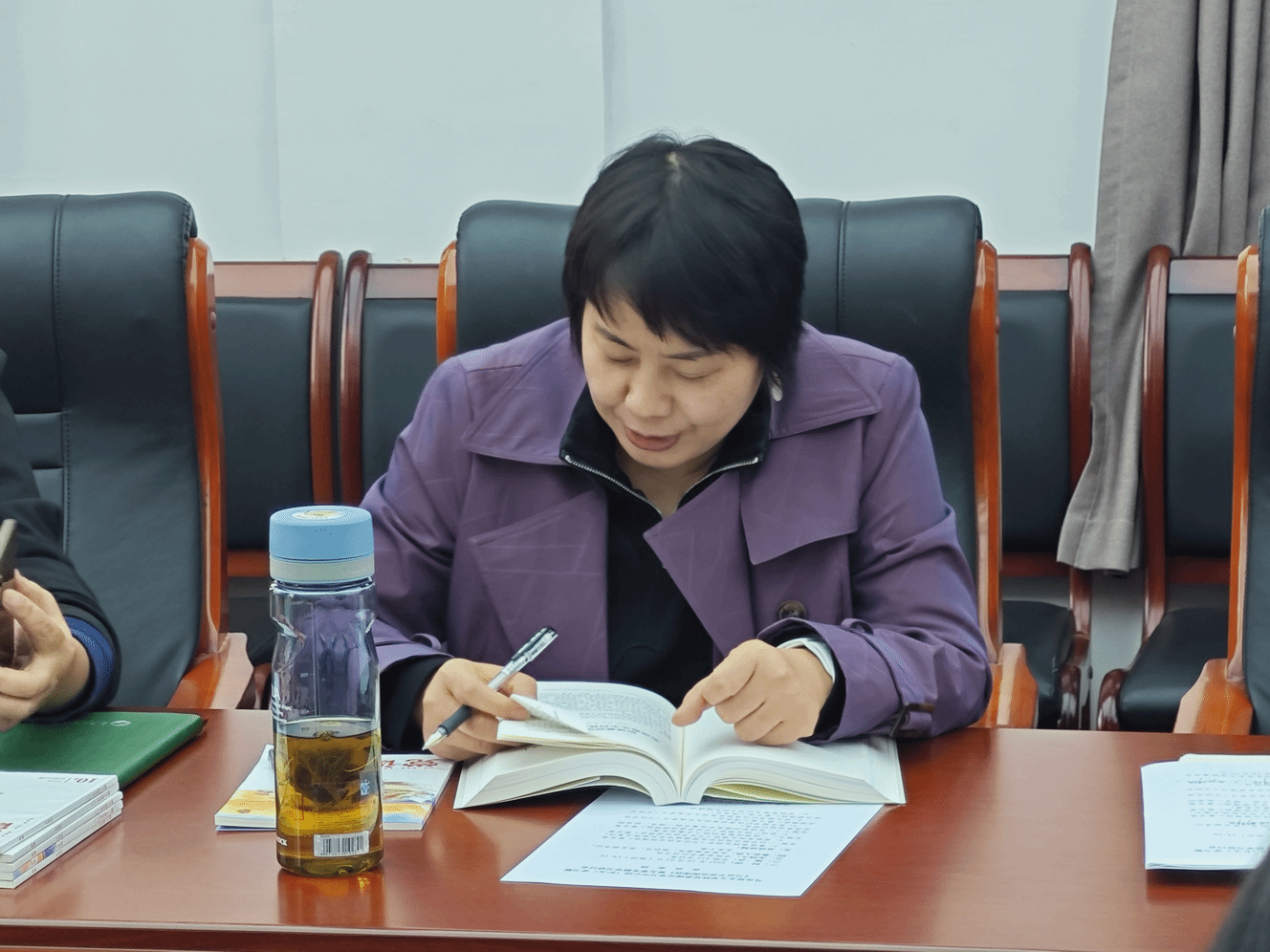 在交流研讨互动环节,党支部书记代表祁君同志交流了学习《习近平谈治国理政》第五卷的心得体会。她表示,本次学习不仅是提升自身理论素养的必然要求,更是将党的创新理论转化为思政课育人实效和基层党建战斗力的关键前提。今后将持续把第五卷的学习成果转化为教学科研的鲜活素材与支部工作的实践指引,努力实现“学思用贯通、知信行统一”。