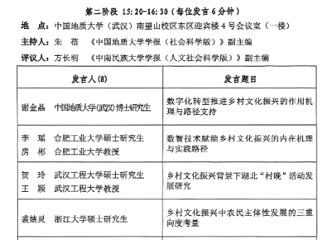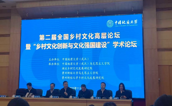本网讯(通讯员 贺玲)2025年11月7日至9日,第二届全国乡村文化高层论坛暨“乡村文化创新与文化强国建设”学术论坛在中国地质大学(武汉)召开。论坛由中国地质大学(武汉)主办,中国地质大学(武汉)mk体育官网与湖北乡村文化发展研究院、贵州财经大学mk体育官网、贵州财经大学乡村文化发展研究院共同承办。mk体育官网王颖教授与研究生贺玲应邀参会并作主题发言。