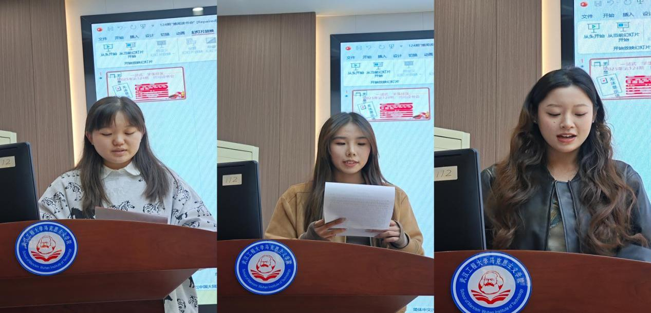 刘艺同学以第二卷为核心,指出本卷开篇对“人为何要正义”的终极追问,让辩论升华为思想的奔涌。她结合德意志意识形态与马克思主义视角,点明正义问题的复杂性:经典中的正义思辨,恰是当代人理解社会价值、锚定精神方向的思想参照。闫雪晴同学梳理了第一卷和第四卷的“破立”逻辑:第一卷是破——以正义的激烈辩论奠定哲学方法与思想基调;第四卷是立——回归正义是什么的核心,定义城邦正义为“统治者、辅助者、生产者各司其职”。她也将这一分工逻辑联结当下社会,指出经典中的城邦理想,正启发着当代对责任与秩序的思考。李嘉琪同学以西方人文主义起源为切入点,结合第四卷梳理《理想国》的时代语境:书中由大到小的逻辑,将正义定义为“灵魂三部分的内在和谐”,主张各司其职的天性分工。但她也以马克思主义视角指出其局限性——这种分工看似维护社会秩序,却带有枷锁属性;而马克思主义强调的自由平等发展,恰是对这种局限的突破。她认为,作为马克思主义专业学生,需以历史、阶级分析法挖掘经典的深度意义,让柏拉图的思想成为当代的警醒。
