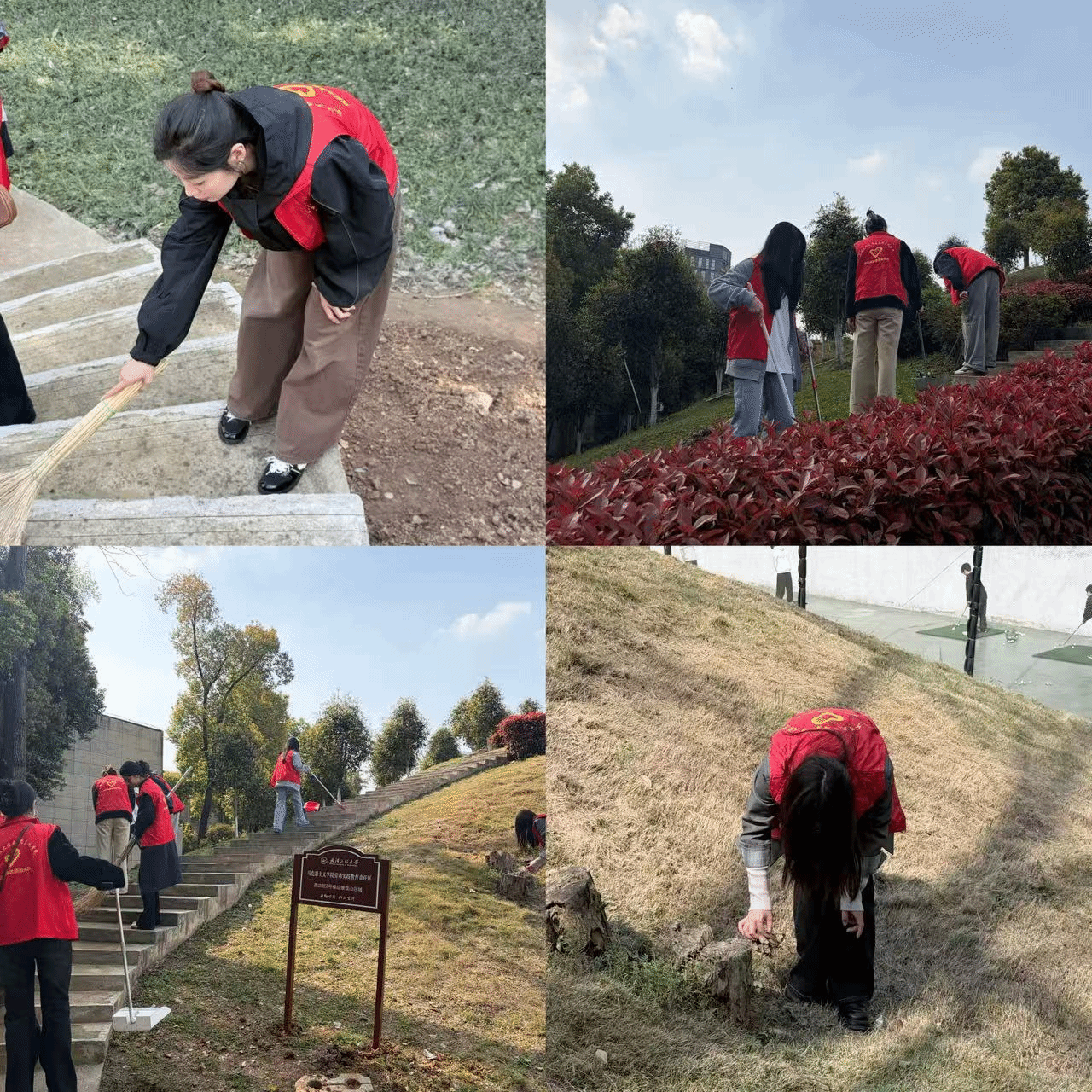 在学院团委统筹部署下,本次志愿服务坚持科学谋划、分区施策、精准发力,实现楼宇公共空间与户外生态区域全覆盖。志愿者们分为两组协同作战、高效推进:一组聚焦求是楼、博闻楼教研室、会议室、综合活动中心等室内场所,开展精细化清洁,清理积存杂物、擦拭公共设施、清扫楼道积尘、整治卫生死角,以严谨细致的作风守护教学科研空间的整洁有序;另一组前往马院后山开展环境综合整治,清理枯枝落叶、白色垃圾与杂草杂物,规整步道、消除盲区,以实际行动守护校园生态底色。大家分工明确、配合默契,用汗水擦亮校园面貌,以实干诠释志愿精神。