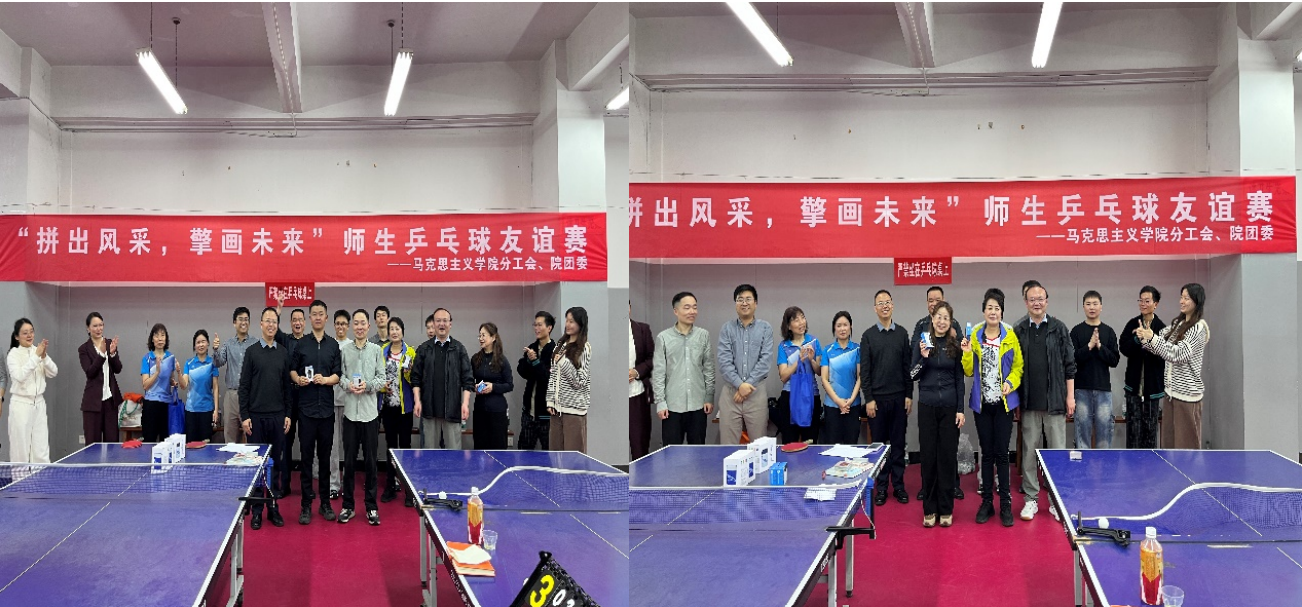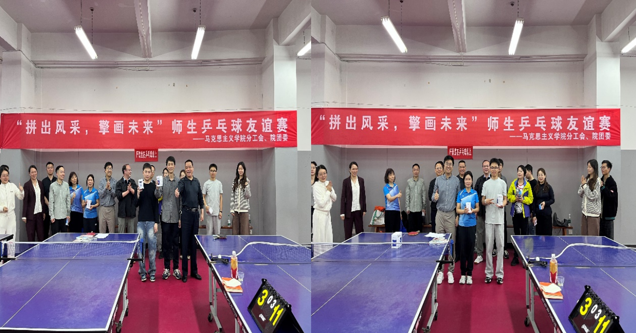 本网讯(通讯员 李齐)为丰富校园文化生活,增进师生情谊,弘扬体育精神,营造积极向上、健康和谐的校园氛围,4月23日下午,在流芳校区乒乓球馆,学院分工会和学院团委共同举办了“拼出风采、擎画未来”师生乒乓球友谊赛。学院的师生运动员齐聚球馆,以球为媒,切磋技艺、传递温情,展现了马院师生昂扬奋进的精神风貌。