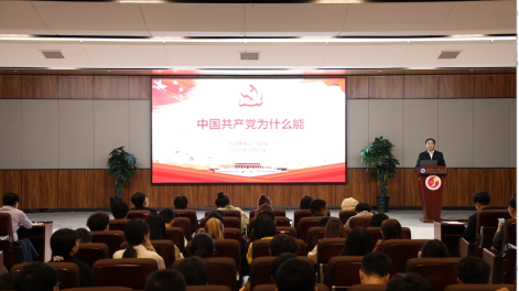 随后,程幼金书记用了近两个小时的时间对“中国共产党为什么能”这一重要问题进行了深入分析和探讨。他首先对习近平总书记“三个为什么”重要论述进行了梳理,回顾了“三个为什么”的提出过程,明确了中国共产党为什么“能”,中国特色社会主义为什么“好”,归根到底是因为马克思主义“行”!接着,程幼金书记重点就“中国共产党为什么能”从九个方面展开探讨:一是有科学理论引领;二是恪守初心使命;三是有人民至上立场;四是善于学习创新;五是勇于自我革命;六是有伟大精神滋养;七是有海纳百川的胸襟;八是讲求道义;九是有强大领导能力。最后,程书记对大学生提出了四点启示:一要爱国爱民,二要锤炼品德,三要勇于创新,四要实学实干。程幼金书记的讲课既有理论阐释,又有案例剖析;既有政治高度,又有实践深度;既有历史纵深感,又有现实针对性,为现场的同学们、老师们上了一堂精彩的示范课。