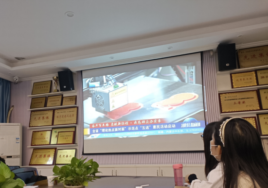 活动开始,全体参与人员通过视频回顾了学院“理论热点面对面”示范点建设情况,观看了湖北卫视播出的全省“理论热点面对面”示范点“五送”惠民活动启动仪式的新闻报道。