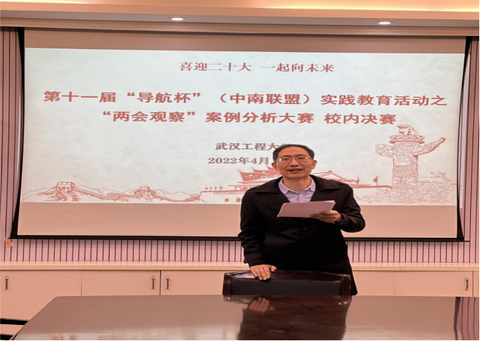 (通讯员庄芩)4月17日下午,“喜迎二十大、一起向未来”——第十一届“导航杯”(中南联盟)主题实践教育活动之“两会观察”案例分析大赛mk体育官网赛区决赛在mk体育官网二楼会议室顺利举行。mk体育官网副院长常城、形势与政策教研室主任陈永贵以及三位青年教师出席了此次比赛并担任评委。