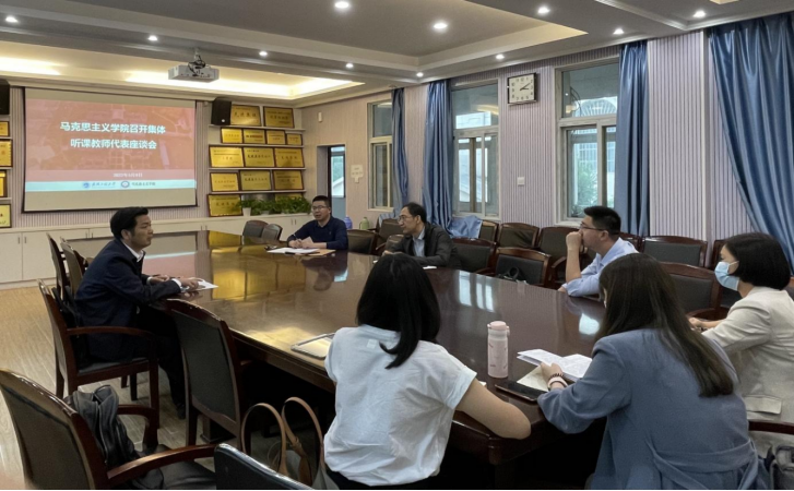 此次听课结束后,学院在马院二楼会议室召开了集体听课教师代表座谈会。会上,曹胜亮院长对教学工作明确提出了“三讲”要求:一要讲活,更加注重师生互动,发挥学生主体作用,激发学生学习兴趣,活跃课堂气氛,不断增强教学效果;二要讲深,讲清楚党的最新创新理论,国家大政方针政策,国内外形势发展演变及政策变化的内在逻辑,做到理论联系实际,深入浅出,引导学生正确认识世界与中国发展大势;三要讲透,把握新时代背景下学生知识需求变化和成长成才规律,更加注重教书与育人相结合,在提升学生专业知识素养的同时,切实落实立德树人根本任务。对于此次深入课堂听课,曹院长给予了“四个能够”的精彩点评,在教学中,马院教师能够面向党的理论创新最新成果,紧紧围绕新时代中国特色社会主义的生动实践,引导学生正确认识世界和中国的发展形势和趋势;能够面向社会现实问题答疑解惑,引导学生加深对党和国家大政方针政策的理解,提升学生观察、分析和解决问题的能力;能够面向中国特色社会主义建设的伟大成就,切实增强学生对中华民族从站起来、富起来到强起来不可逆转的历史进程的认同,引导学生结合专业特长投身于实现中华民族伟大复兴中国梦的伟大实践;能够以严谨的治学态度对待教学工作,备课充分,授课内容充实,教学程序完整,教学方法灵活,充分彰显了马院教师立德树人的良好风范。曹胜亮院长还结合习近平总书记在中国人民大学考察时的重要讲话谈了学习心得体会。