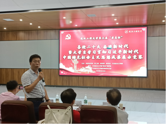 (通讯员 方思齐 颜欣)为全面推进习近平新时代中国特色社会主义思想“进教材、进课堂、进头脑”,坚定大学生“四个自信”,实现立德树人的根本任务,努力培养中国特色社会主义事业的建设者和接班人,激发我校大学生学习贯彻新时代中国特色社会主义思想的积极性主动性实效性,5月26日晚,“求是杯”决赛在mk体育官网计算机学院图灵报告厅举办。mk体育官网校党委宣传部副部长赵小硕、mk体育官网党委书记舒先林,院党委副书记、副院长(兼)陈俊,副院长常城,副院长金诗灿、团委书记蔡明广、mk体育官网研究生思政课教研室主任谢俊、形势与政策教研室主任陈永贵、原理教研室主任韩雪吟、概论教研室主任颜欣出席此次活动。本次活动由mk体育官网2021级硕士研究生王梦涵主持。