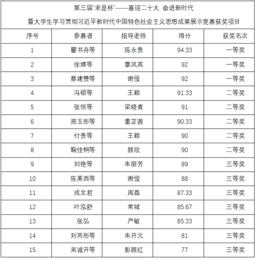 最后经过评委老师们的评选打分,由主持人王梦涵公布了比赛获奖名单,本次决赛共评选出一等奖3名,二等奖5名,三等奖7名。颁奖结束后,评委老师与获奖同学合影留念,宣告了“求是杯”决赛圆满结束。(审稿 常城)