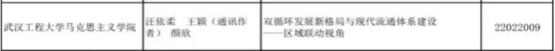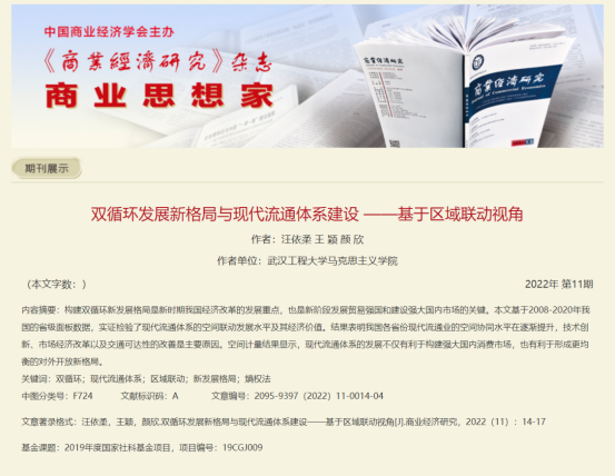 (通讯员王颖)近日,我校mk体育官网19级优秀毕业生汪依柔以第一作者身份、王颖副教授以通讯作者身份、颜欣博士以第三作者身份,以mk体育官网,mk体育官网为第一单位在北大核心期刊《商业经济研究》发表“双循环发展新格局与现代流通体系建设——区域联动视角”论文。此论文为颜欣博士国家社科基金青年项目《大国战略竞争下东盟地区安全治理机制变迁及中国对策研究》阶段性成果。