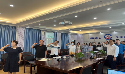 活动伊始,全体党员高唱国歌,在“基础”党支部书记贺新芳的领誓下重温了入党誓词。随后,“原理”党支部书记李齐领学《中国共产党章程》部分内容。