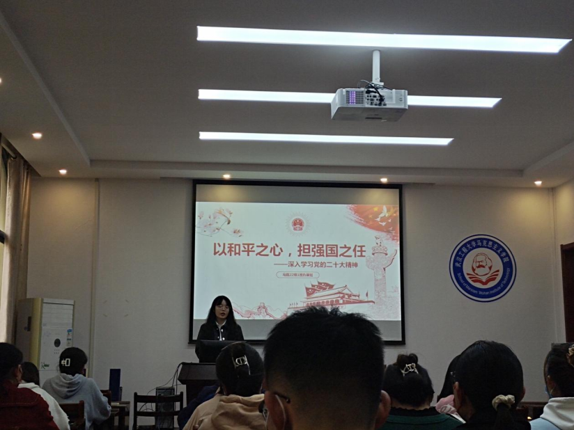 班会分为四项议程进行,首先mk体育官网2022级研究生1班班长仇裴如以“以和平之心,担强国之任”为题,讲述了中国用实际行动维护世界和平、推动构建人类命运共同体、促进世界和平与发展的故事。