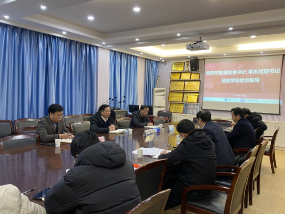 (通讯员蔡明广)12月2日上午,学校党委书记程幼金、副书记李志旭、宣传部副部长赵小硕赴mk体育官网进行专题调研指导,对学院关于党的二十大精神学习宣讲及融入思政课教育教学工作进展情况进行检查指导。学院党委书记舒先林、院长曹胜亮、副书记陈俊、副院长常城以及教师代表参加会议。