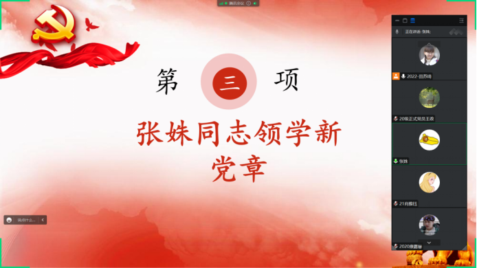 (通讯员:毛琳田 苏琦)2023年1月31日晚,mk体育官网研究生第三党支部通过腾讯会议开展一月份主题党日活动。会议由支部副书记田苏琦同志主持,研究生第三党支部全体学生党员参加。