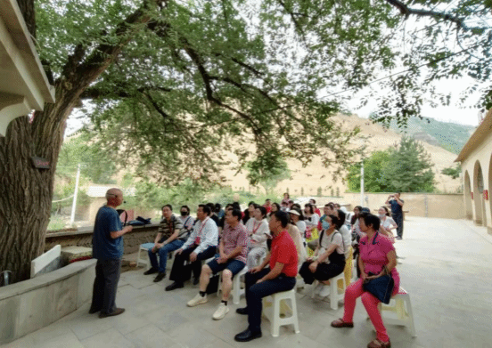 2023年7月10日上午,研修班全体学员赴米脂县高西沟参观学习。高西沟曾流传这样一首旧谣:山上光秃秃,沟里乱石头,年年遭灾害,十年九不收。但经过几代人的艰苦奋斗,该村目前林草覆盖率达69.3%,综合治理程度为78%,农民人均纯收入13000多元,现在“山青、水秀、果香、村美、人富”,被授予全国文明村、全国农业旅游示范点、全国最具魅力休闲乡村、陕西省休闲农业明星村等荣誉称号。2021年9月13日,在陕西省榆林市考察调研的习近平总书记来到米脂县银州街道高西沟村,了解推进水土流失治理和生态文明建设的情况。高西村姜良彪书记深情并茂地向老师们介绍了习近平总书记考察高西沟的情景和高西沟生态文明建设成就。米脂县高西沟村位于陕北黄土高原丘陵沟壑区,总面积4平方公里。曾经的高西沟村荒芜贫瘠,水土流失严重。上个世纪50年代起,高西沟人开始了征山治水运动,在实践中摸索出“三三制”(田地、林地、草地各占三分之一)治理模式,并与时俱进创新为“三二一”模式(三份林地、二份草地、一份田地)。将一个地表破碎、土地贫瘠的秃山沟治理成如今“梯田层层盘山头,高山松柏连成片”的“陕北小江南”。老师们在这里深刻理解了高西沟从“山上光秃秃、年年遭灾荒”到“层层梯田盘山头、片片林草盖坡洼”的过程,实地感受到了生态文明两山理论践行成果。