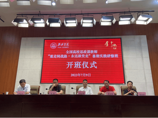 2023年7月9日下午,本研修班举办了隆重的开班仪式。榆林学院校党委副书记、校长许云华出席并致辞。我校校党委副书记李志旭以及西安财经学院mk体育官网院长王勇,辽宁科技大学mk体育官网院长杨洪泽,榆林学院mk体育官网党委书记高宏飞出席开班仪式。开班议程包括五项内容,首先第一项,全体起立、奏唱《中华人民共和国国歌》,第二项,由榆林学院党委副书记、校长许云华致辞。致辞中指出,榆林市自然资源丰富,战略地位重要,煤盐油气富裕一地,在陕西发展的战略布局中,榆林人民具有斗争精神,为改变生态环境、建设美好家园,同茫茫风沙和丘陵沟壑进行了艰苦卓绝、坚持不懈的伟大斗争,榆林由黄沙漫天变成了塞上绿洲,被授予“国家森林城市”称号。在提到本次研修的意义的时候,许云华校长指出,“天下马院是一家”,作为马克思主义研究者、传播者、实践者,通过开展“沿着总书记的足迹·重走转战陕北路”实践研修活动,学校要让广大思政课教师从陕北早期革命和转战陕北的非凡历程中感受马克思主义的真理力量和实践力量,鼓起迈进新征程、奋进新时代的精气神,提高政治判断力、政治领悟力、政治执行力,做到明方向、识大局,把学习转战陕北历史同总结经验、关照现实、推动工作结合起来,同解决实际问题结合起来,把学习成效转化为干事创业、勇担使命、立德树人的内生动力,转化为培养德智体美劳全面发展的社会主义建设者和接班人的强大精神动力。