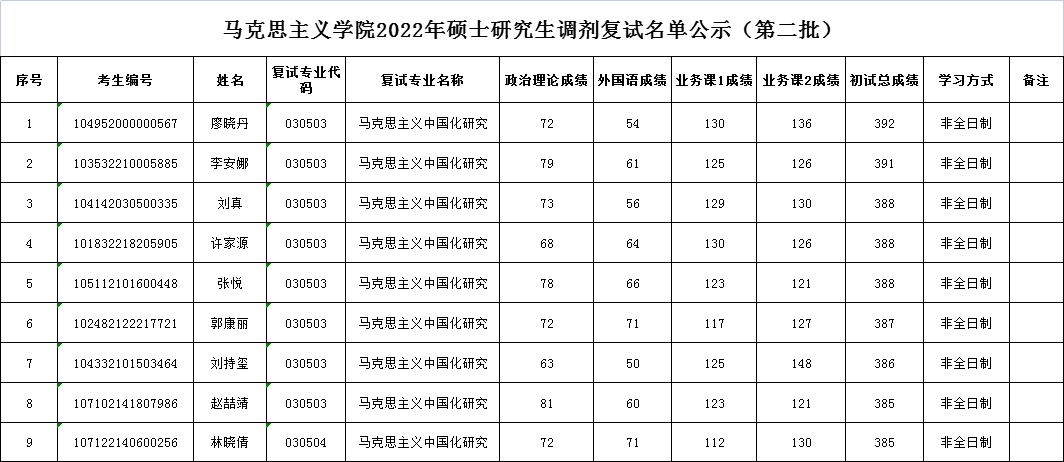 mk体育官网2022年硕士研究生调剂复试名单公示(第二批)