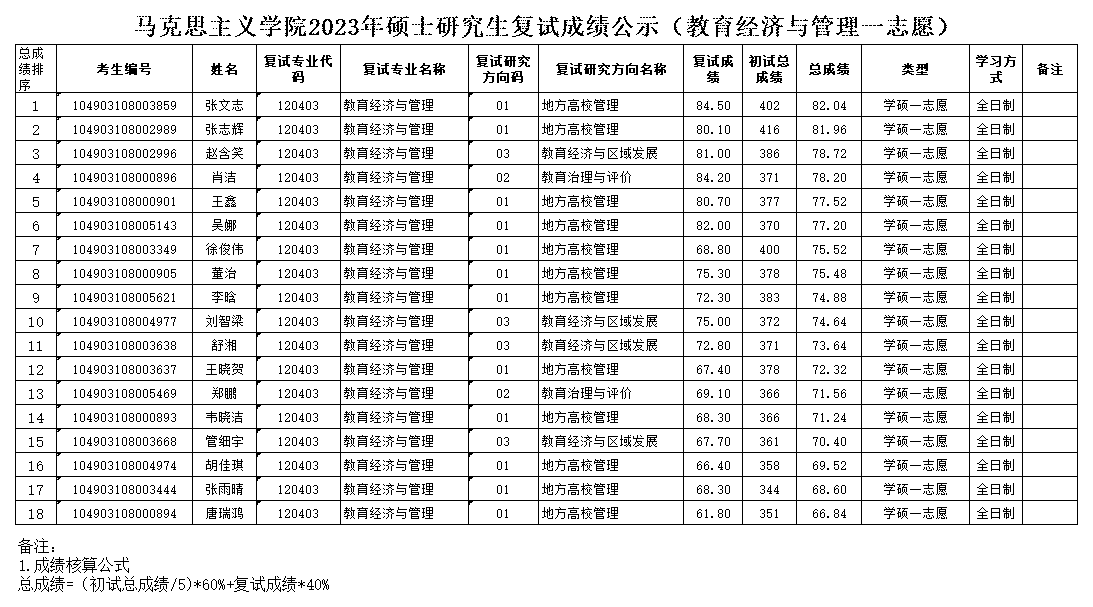 mk体育官网2023年硕士研究生复试成绩公示(一志愿)