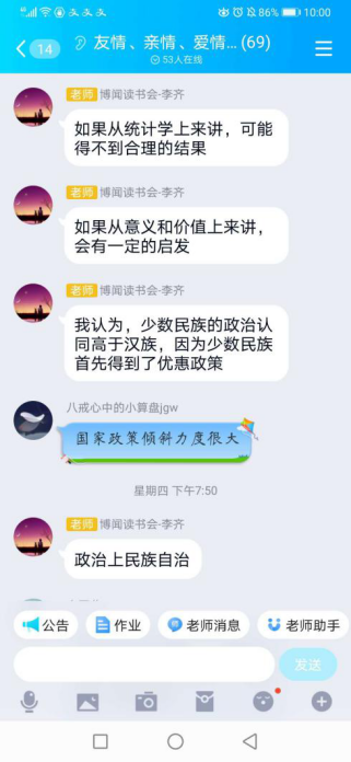 最后,李齐老师进行总结,他一方面对五位研究生同学的发言内容表示肯定,认为这五位同学认真准备、细致阅读著作,从不同视角对中国政治文化认同问题作出了独特的阐释;另一方面李齐老师提到,我国各民族要像石榴籽一样紧紧抱在一起,才能够构建起坚实的中国特色社会主义发展道路,并以共同团结奋斗、共同繁荣发展的精神,实现中华民族伟大复兴。