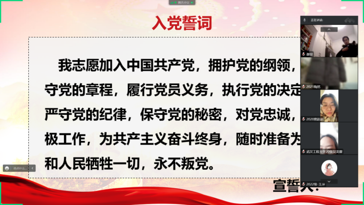 第二项,全体党员在支部副书记田苏琦领誓下重温了入党誓词。